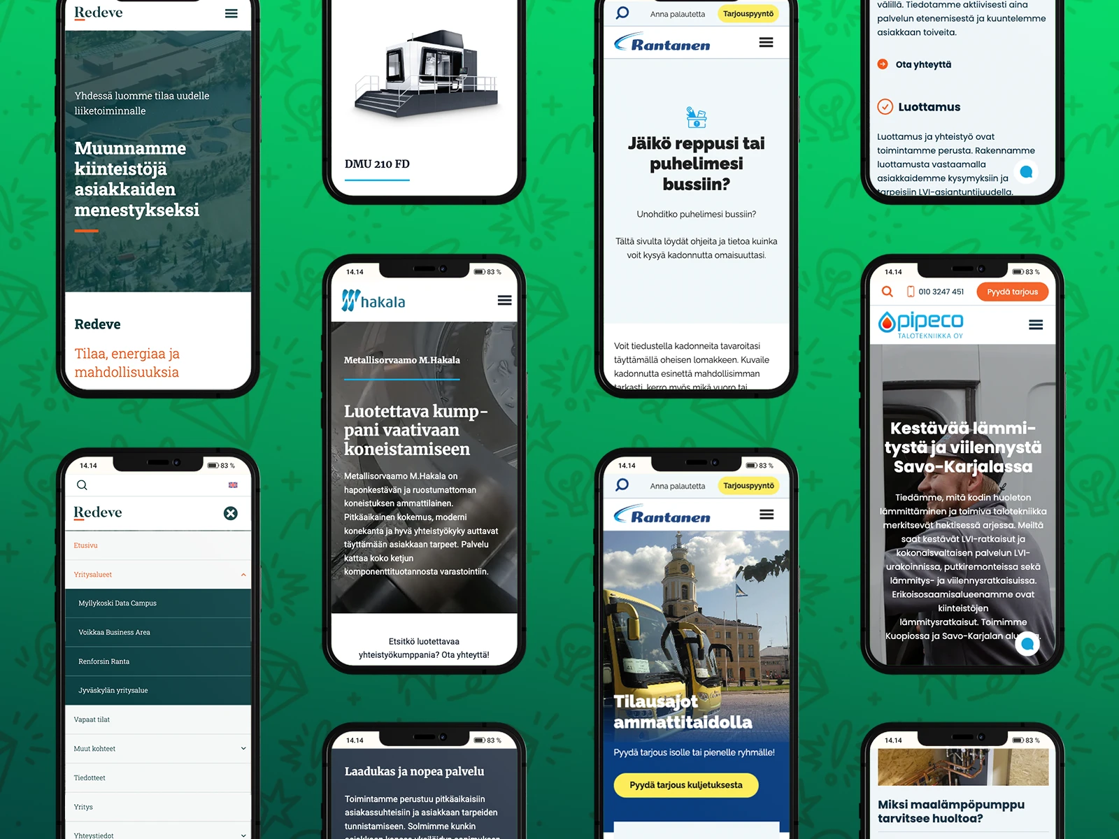 Suunnittelemme, toteutamme ja luomme aktiivisesti sisältöä yritysten verkkosivuille. Verkkosivut ovat brändisi käyntikortti. Toimivat ja visuaalisesti selkeät verkkosivut luovat uskottavuutta, luotettavuutta, parantavat näkyvyyttä ja ennen kaikkea myyvät enemmän. Jatkuva sisällöntuotanto viestii, että yritys on aktiivinen.